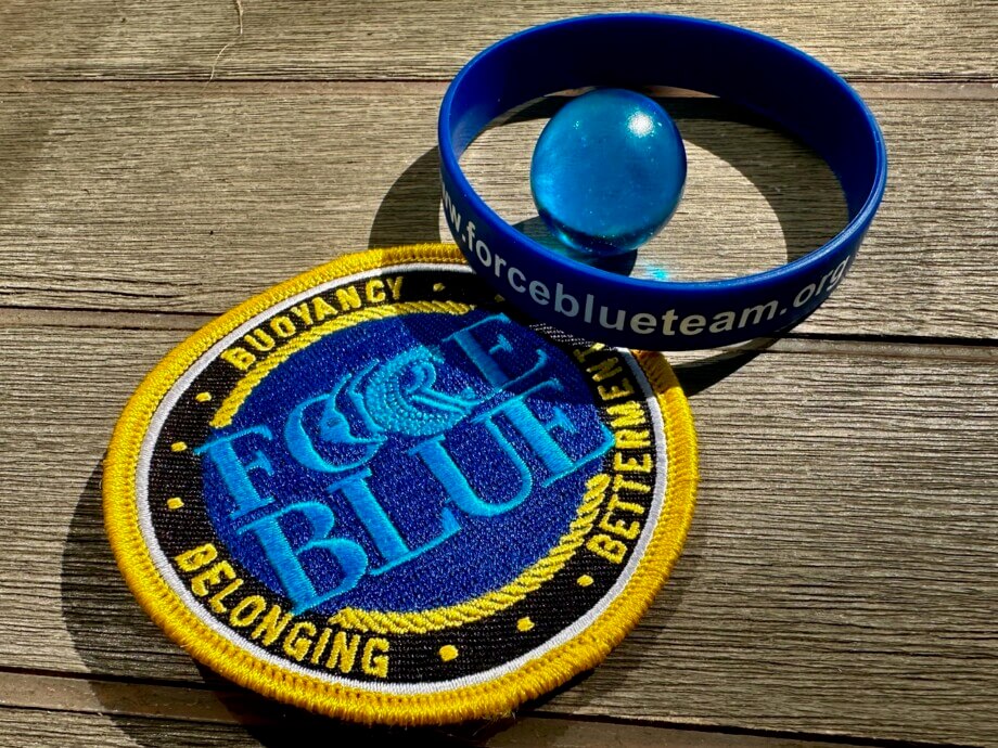 With your FORCE BLUE wristband, Velcro logo patch and Blue Mind™ blue marble.