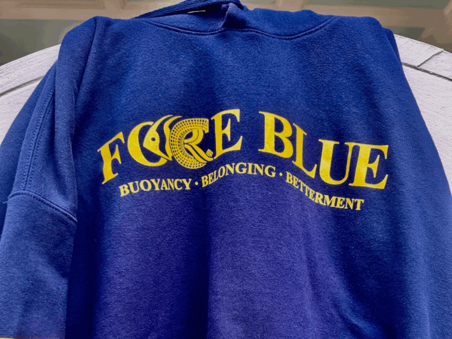 In a signature FORCE BLUE “Buoyancy. Belonging. Betterment.” team hoodie.