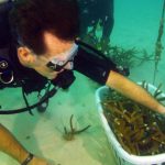 Key Biscayne, FL) – Last week, veterans from FORCE BLUE, working alongside scientific partners from the University of Miami Rosenstiel School’s Rescue A Reef Program, the Phillip and Patricia Frost Museum of Science, The Florida Aquarium and Secore International, successfully harvested and out-planted 1,000+ staghorn coral (a threatened species), thousands of mountainous star coral larvae and 100 genetically unique, 2-year-old staghorn coral colonies on to the 100 Yards of Hope coral reef restoration site in the waters just south of Miami.