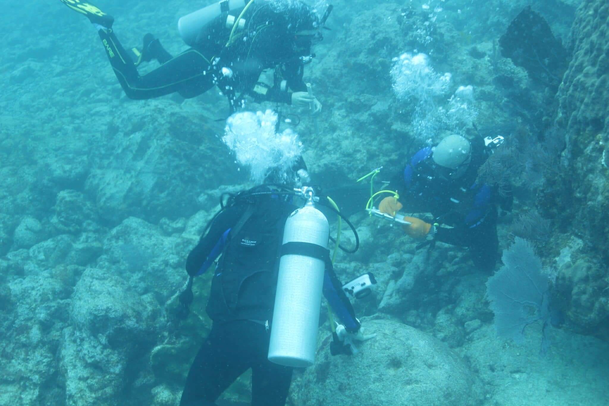 Boys smiling after dive