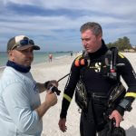 NFL veteran, Tampa Bay Buccaneers kicker Martin Gramatica turned out to show his support, broadcasting his daily sports radio show from the beach and later jumping in for some debris removal with dive team “3”.