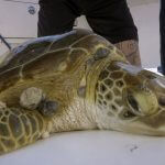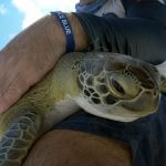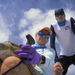 During the study period in June, FORCE BLUE veterans helped collect samples from 26 green turtles in the lower Florida Keys, and gathered important data from each animal including body condition data, epibiota identification (i.e., organisms that live on the skin and shell of the turtles), and documentation of the presence of external FP tumors. Blood samples from the turtles were evaluated for biotoxin concentrations and plasma proteins, including antibodies to FP-associated herpesvirus. Surprisingly, only seven (27%) of the captured turtles had external FP tumors. Three of those seven were debilitated by FP and were immediately taken to the Turtle Hospital in Marathon for treatment.